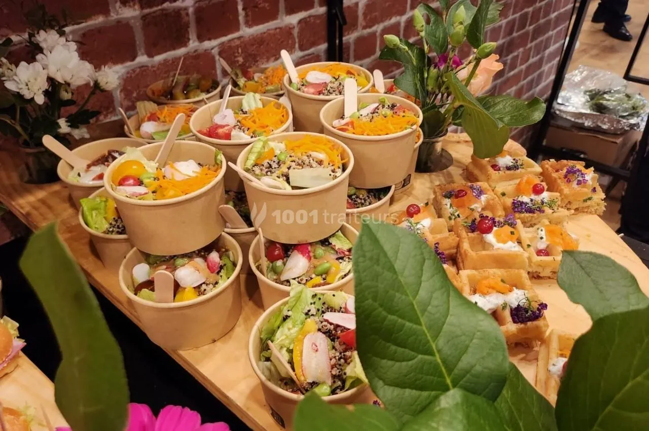 Buffet pour 45 pers. La prestation était au top. L'installation était magnifique, soignée, appétissante, colorée, fleurie. Beaucoup de choix.