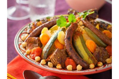 Tradition du Maroc : Un couscous généreux (3 viandes), mijoté avec soin pour une infusion parfaite des épices.