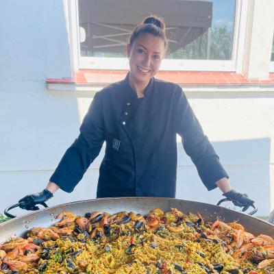 Soleil d'Espagne : Notre paella royale cuisinée en direct (Live Cooking) pour le plaisir des yeux et des papilles.
