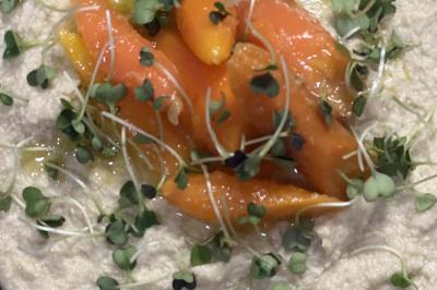 Parmi leurs créations, on retrouve des plats comme le poulpe grillé avec purée de chou-fleur rôti, ou encore la pavlova exotique. Chaque recette met en valeur des produits de qualité et de saison.