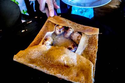 La confection en direct devant vos convives suscitera convivialité et curiosité autour de notre sympathique équipe de crêpiers.