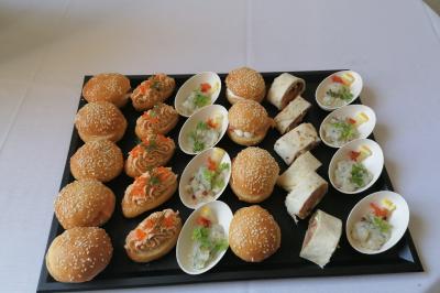 Proposition de pièces salées froides et chaudes ainsi que des pièces sucrées pour terminer le cocktail sur quelques gourmandises